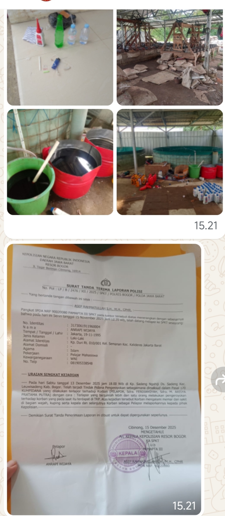 Pada Senin, 15 Desember 2025, perwakilan wartawan melaporkan dugaan tindak pidana pengeroyokan sebagaimana dimaksud dalam Pasal 170 KUHP ke Polres Bogor.