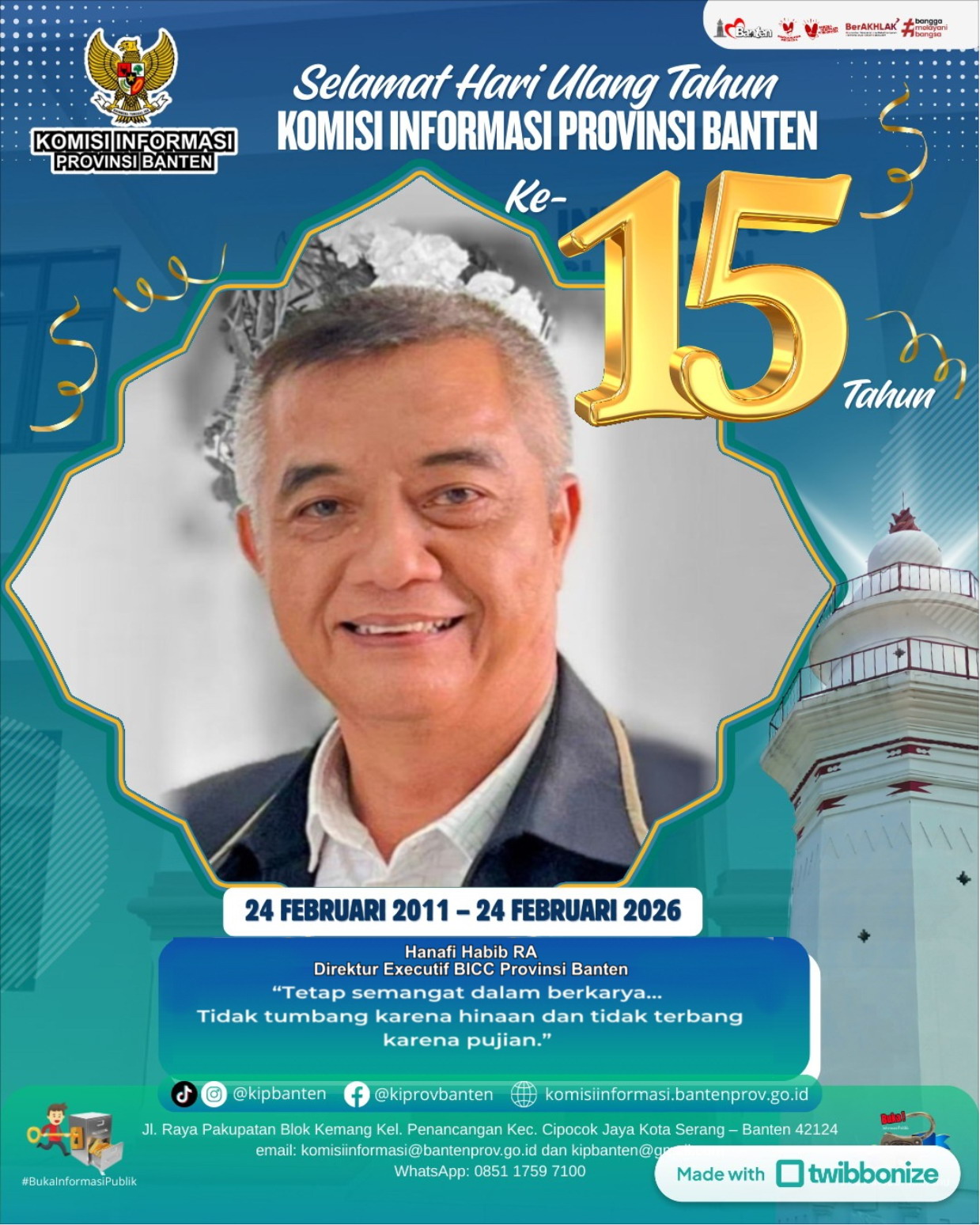 Direktur Executif Banten Investigation Corruption Control (BICC), Ucapkan Selamat HUT Komisi Informasi Provinsi Banten ke- 15