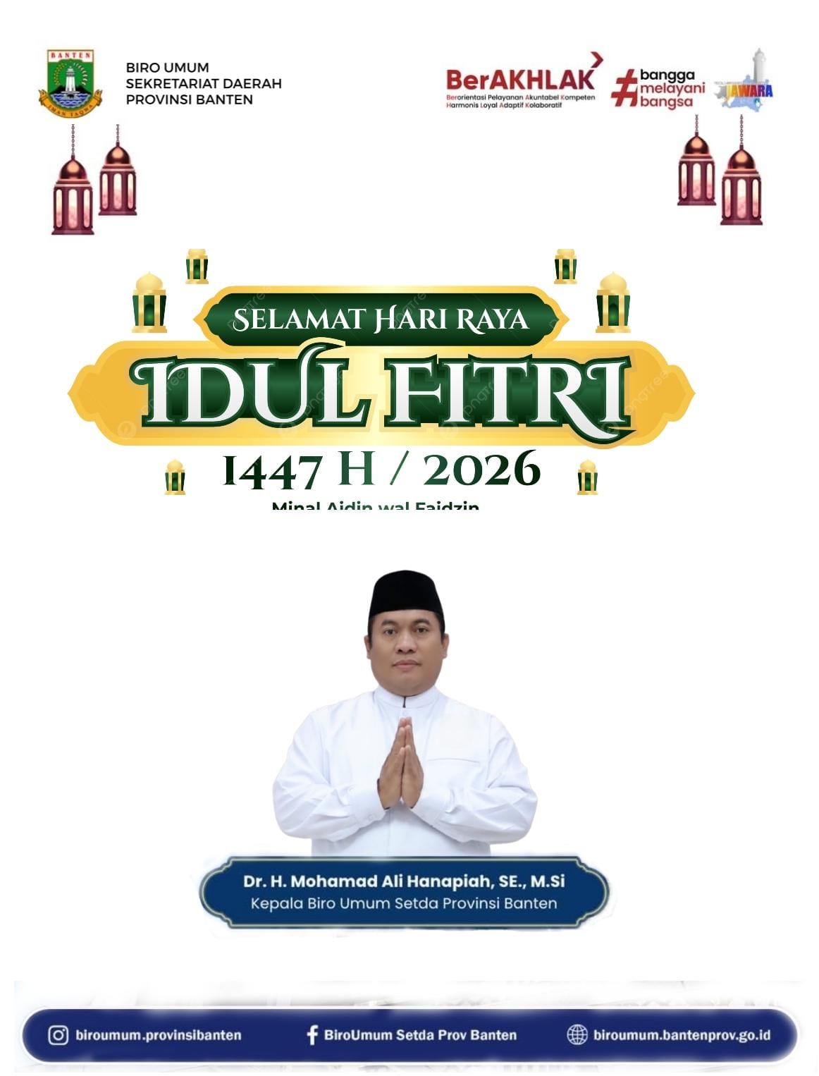 Biro Umum Setda Provinsi Banten mengucapkan Selamat Hari Raya Idul Fitri 1447 H/2026 M. Taqaballahu Minna Wa Minkum “Mohon Maaf Lahir & Batin”