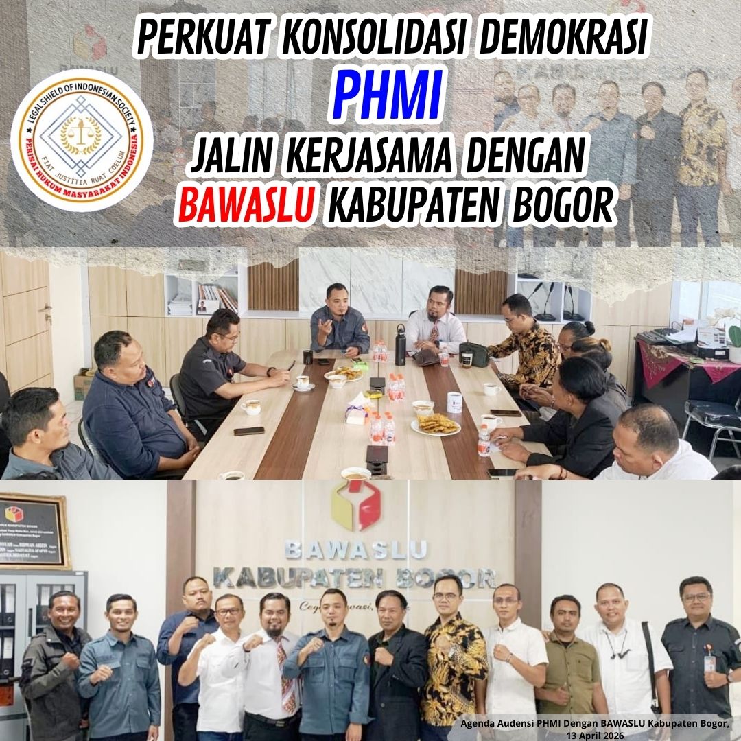 – Perisai Hukum Masyarakat Indonesia (PHMI) menghadiri agenda Audensi dengan Bawaslu (Badan Pengawas Pemilihan Umum) pada hari senin 13 April 2026, bertempat di Kantor BAWASLU Kabupaten Bogor yang berada di jalan tegar beriman kecamatan cibinong.