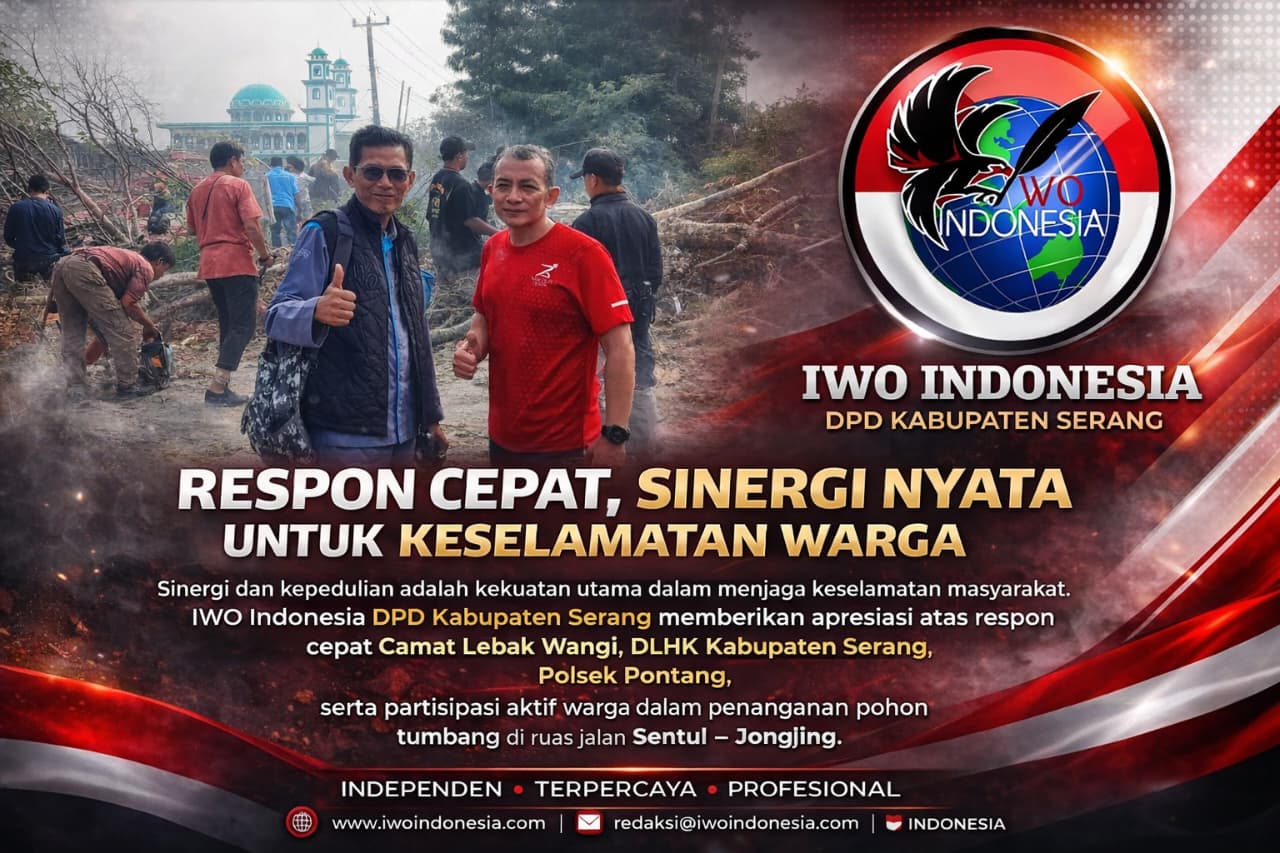 Ketua IWO Indonesia DPD Kabupaten Serang menegaskan bahwa kecepatan respons yang ditunjukkan menjadi cerminan nyata hadirnya negara di tengah masyarakat.